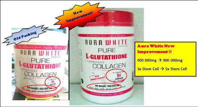 Kini AURA WHITE 900,000MG datang dengan formula baru! Penambah baikkan yang amat ketara, daripada 400,000mg ke 900,000mg.. Banyak tak banyak uollss! Memang berbaloi sangat.. Selain tu, ditambah dengan 2 stem cell baru.. Dulu cuma 3 stem cell sahaja, sekarang 5 stem cell! Apa stem cell yang 5 tu? Ini dia, TOMATO, APPLE, ROSELLE, SNOW LOTUS dan RASPBERRY.. Banyakkan uolls? Botolnya pun elegan dan tinggi daripada yang dulu.. Mai, mai, mai beli!